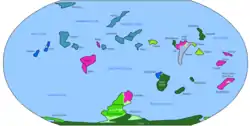 ![]() Карта континентов в середине карелия (2050 млн лет назад) | |