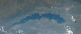 Объём воды — 160 км³. Высота над уровнем моря — 485 м.