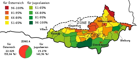 Анализ результатов голосования показал, что за Австрию голосовали практически все этнические немцы, жители городов, а также 40 % местных словенцев, что и обеспечило победу проавстрийской стороны. За Югославию проголосовало 60 % словенцев. Многие словенцы голосовали за Австрию только потому, что плебисцитная зона А была искусно проведена вплоть до предместий города Целовца (ныне Клагенфурт), но сам город оставался вне её. Такое распределение зон вызвало у словенских крестьян боязнь потерять рынок в Целовце в случае югославской победы. В результате многие словенские крестьяне голосовали за Австрию[2].