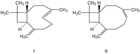 Кариофиллен C15H24 — терпеновый углеводород. Кариофиллен существует в виде двух изомеров: собственно кариофиллен (формула I) и изокариофиллен (формула II).