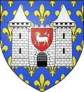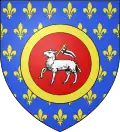 Лазурный фон усеян золотыми лилиями, символом французской монархии, в центре — городские ворота, по бокам от которых возвышаются две серебряные каменные башни. Над серебряной решеткой ворот расположен красный гербовой щит, на котором изображен серебряный агнец. Над его головой, повернутой влево, золотой нимб. Он несёт серебряный крест.