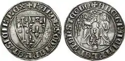 При короле Неаполя Карле II Анжуйском в 1303 году в подражание турскому грошу была выпущена монета стоимостью в половину золотого тари или 1⁄12 дуката, получившая название серебряного карлино[1][6]. Вес монеты составлял 3,34 г серебра 958-й пробы[1]. У карлино появилось множество подражаний, ряд из них получили собственные названия. Так, карлино, на реверсе которых была изображена лилия стали называть джильято, карлино короля Альфонса — альфонсино, Фердинанда — коронато[1][6].
