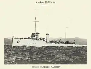Карло Альберто Раккия (Carlo Alberto Racchia) — лидер эскадренных миноносцев типа «Карло Мирабелло» Королевского ВМФ Италии. По итальянской классификации это был «скаут» (Esploratore Leggero), эквивалент английского лидер эскадренных миноносцев. Корабль в 1914 году назван именем политика, сенатора Итальянского королевства и министра военно-морского флота Карло Альберто Раккия — Carlo Alberto Racchia (1833—1896 гг.).