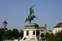 - В 1848 году, через год после смерти Карла, было решено увековечить память знаменитого полководца памятником. Он был сооружён скульптором Антоном Домиником Фернкорном и открыт 21 мая 1860 года. На его постройку ушло более 7 лет. Памятник был установлен на площади Героев в Вене.