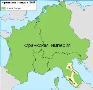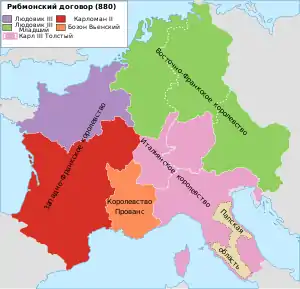 Карл III Толстый (нем. Karl der Dicke, фр. Charles le Gros; 13 июня 839, Бавария — 13 января 888) — король Восточно-Франкского королевства в 876—887 годах (до 882 года — король Алемании и Реции), король Италии в 879—887 годах, франкский император в 881—887 годах, король Лотарингии (Карл II) в 882—887 годах, король Западно-Франкского королевства в 884—887 годах. Представитель династии Каролингов.