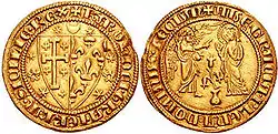 Как любой суверенный правитель, став королём, Карл начал чеканить свои монеты. Он лично принял участие в разработке проекта в 1278 году. Также для разработки монет были привлечены лучшие мастера монетных дворов Бриндизи и Мессины. Монеты выпускались в двух вариантах: золотые (салюто д’оро) и серебряные (салюто д’аргенто)[23]. Руководили выпуском флорентийские минмейстеры Франческо Формики и Джованни Фортино. Позже выпуск монет продолжил его сын Карл II и внук Роберт. Эти монеты получили название карлино (итал. Carlino).