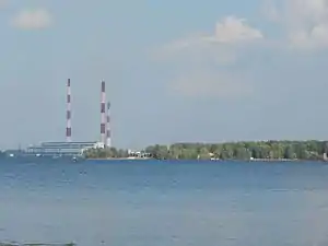 Три дымовые трубы электростанции достигают высоты 180, 250 и 270 метров, они были введены в строй в 1968, 1971 и 1973 годах, соответственно[4].