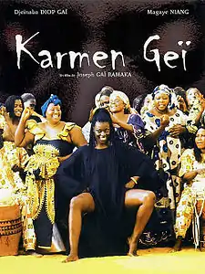 Кармен Гай (Karmen Geï) — драма 2001 года режиссёра Жозефа Гэй Рамаки, снятая по мотивам новеллы «Кармен» Проспера Мериме. Фильм наполнен музыкой в стилях джаз, афро-поп, национальными мотивами Африки.
