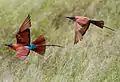 Две карминные щурки в полёте (северная Ботсвана)