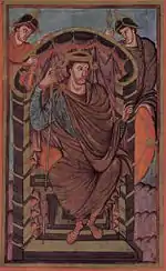 Штутгартская псалтырь | Между 820—830 | Сен-Жермен-де-Пре | Псалтирь, 316 миниатюр | Штутгарт, Государственная библиотека земли Вюртемберг, Cod. bibl. fol. 23 |