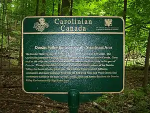 На самом севере Каролинского леса, в долине Ниагарского разлома, вблизи канадского города Дандас, расположен заповедник «Dundas Valley Conservation Area».