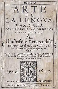Титульный лист книги Кароччи «Arte de la Lengva Mexicana con la declaración de los adverbios della»