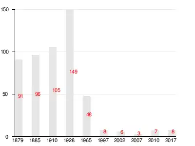 Число жителей по семейным спискам 1879 г.: 35 м. п., 56 ж. п.; по приходским сведениям 1879 г.: 32 м. п., 50 ж. п.[2]