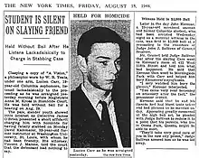 - Adams, Frank, "Columbia Student Kills Friend and Sinks Body in Hudson River, « The New York Times, August 17, 1944