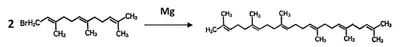 Сквален — углеводород тритерпенового ряда, широко распространенный в животном и растительном мире, является главным компонентом печени некоторых видов акул. Каррер показал, что конденсация двух молекул фарнезил бромида в присутствии магния приводит к продукту, который после очистки, аналогично природному сквалену, можно превратить в смесь кристаллических гексагидрохлоридов с характеристической Тпл = 143—145°.