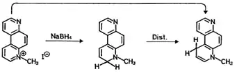 При действии на N-метил-4,7-фенантролин йодид NaBH4 получается орто-дигидропроизводное, которое при перегонке превращается в пара-дигидропроизводное, которое можно получить непосредственно, обрабатывая N-метил-4,7-фенантролин йодид Na2SO4[18].