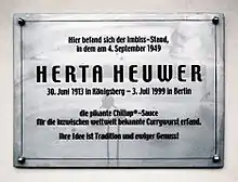 В нескольких историях возникновения карривурста чётко прослеживается, что этот кулинарный феномен с абсурдным сочетанием индийских специй с немецкой колбаской в послевоенной Германии является образцом искусства имитации, реакцией на культуру питания оккупировавших страну американцев, любителей стейков и хотдогов с кетчупом[20][40]. Согласно самой популярной легенде о карривурсте, в послевоенном Берлине 4 сентября 1949 года в проливной дождь замёрзшая Герта Хойвер, уроженка Кёнигсберга и хозяйка киоска-сосисочной на Штутгартской площади в Шарлоттенбурге, в отсутствие клиентов решила подкрепиться и экспериментировала со специями и придумала томатный соус к сосиске из смеси томатной пасты и вустерского соуса с порошком карри и другими специями[13]. Недавно вернувшийся и американского плена муж Герты Курт рассказывал ей, что американцы едят мясо с кетчупом и острыми специями, что могло дать импульс её кулинарному творчеству. Томатным соусом со специями Герта Хойвер полила порезанную кусочками поджаренную сосиску[41]. Непритязательная послевоенная клиентура оценила кулинарную находку Герты Хойвер, и вскоре из жалкой сколоченной мужем будки предприятие Герты превратилось в респектабельную закусочную с оборотом в 10 тыс. сосисок в день[41]. Спустя десять лет 21 января 1959 года Хойвер зарегистрировала права на свой соус под названием «чиллап» (от «чили» и «кетчуп», нем. Chillup)[42][43] в патентном ведомстве в Мюнхене под торговым знаком № 721319[39]. На месте, где стоял киоск Герты Хойвер, в 2003 году ей установили памятную табличку[44]. Рецепт своего соуса Герта Хойвер хранила в секрете и унесла с собой в могилу[45][46].