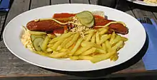 Ка́рривурст (нем. Currywurst — «колбаса с карри») — немецкая культовая закуска из обжаренной и порезанной на кусочки сосиски под томатным соусом с карри. Карривурст традиционно относят к берлинской кухне: появившись во времена послевоенного дефицита, он впитал в себя историю города, разрушенного Второй мировой и разделённого холодной[1]. В 2009—2018 годах в Берлине неподалёку от исторического чекпойнта «Чарли» работал Музей карривурста[2]. Признанный немецкий национальный фастфуд[3] с международной славой в 2019 году отметил своё 70-летие, проложив себе за это время дорогу из пролетарских уличных закусочных на благородные фуршеты с белым фарфором и переживает «хипстерское возрождение» как веганская колбаска из сейтана или слоуфуд из регионального биомяса[4].