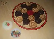 Бита — это специальная фишка, отличающаяся от других большим весом и размером, которая используется для выбивания других фишек. По правилам ICF бита должна быть круглой, ровной и гладкой. Диаметр биты не должен превышать 4.13 см, а вес — 15 граммов. Костяные и металлические биты запрещается использовать во время турниров.