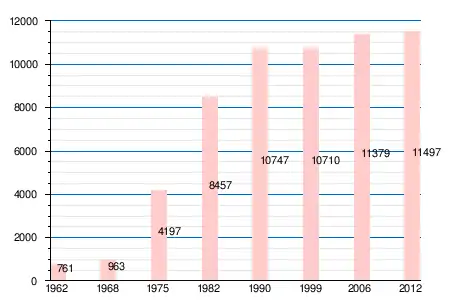 | 1962 | 1968 | 1975 | 1982 | 1990 | 1999 | 2006 | 2011 | 2012 |