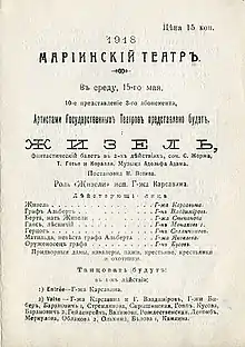 - «Жизель» — Жизель (18 июня, партнёр Нижинский)