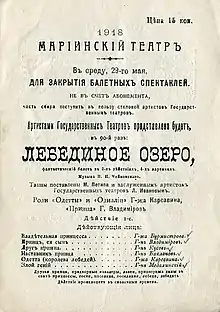 Тама́ра Плато́новна Карса́вина (25 февраля [9 марта] 1885, Санкт-Петербург, Российская империя — 26 мая 1978, Лондон, Великобритания) — русская балерина и педагог[7]. Солировала в Мариинском театре, входила в состав Русского балета Дягилева и часто танцевала в паре с Вацлавом Нижинским. После революции жила и работала в Великобритании. Сестра историка и философа Л. П. Карсавина.