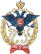 - Знамя простое с надписью: «1796—1896», с Александровской юбилейной лентой;