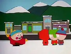 - В конце эпизода Картман падает прямо на автобусную остановку.