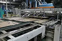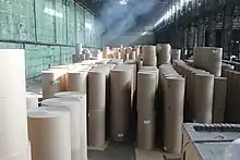 Снятые с барабана сырые листы картона, партиями по 30 листов, проложенные железными листами, сжимаются в гидравлическом прессе. Толщина папочного листа обусловливается густотой массы, скоростью хода машины и количеством слоёв, образующих лист. Формат листа в зависимости от поперечника вала или барабана d, который сменяют, причём длина постоянная, определяемая шириной полотна машины и шириной цилиндра b; ширина же листа зависит от диаметра барабана d и равна окружности этого вала.