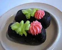 «Карто́шка» — пирожное из крошек бисквита, перемешанных с масляным кремом и коньяком или ромом. Снаружи отделывается помадкой или обсыпкой с содержанием какао-порошка, и украшается масляным кремом. Форма изделия клубневидная или любая другая[1].