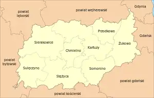 - сельские гмины: Гмина Хмельно, Гмина Пшодково, Гмина Сераковице, Гмина Сомонино, Гмина Стенжица, Гмина Суленчино