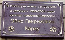 Эйно Генрихович Ка́рху (1923—2008) — учёный-филолог, литературовед, переводчик, доктор филологических наук, профессор, Заслуженный деятель науки РСФСР, Заслуженный деятель науки Карельской АССР (1969), лауреат Государственной премии Карельской АССР (1983), лауреат Государственной премии Республики Карелия (2002), Почётный гражданин Республики Карелия (1999)[2].
