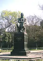 Памятник Вагифу на фронтоне лоджии здания Музея азербайджанской литературы имени Низами Гянджеви