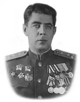 - три ордена Красного Знамени (14.11.1943[6], 30.10.1944[7], 19.11.1951[8])