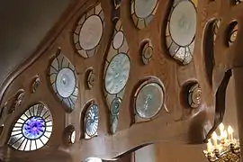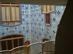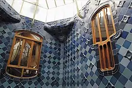 Как и в других произведениях Гауди, в доме Батльо тщательно продуманы мельчайшие детали конструкций и декорации. Интересно оформление светового двора, где архитектор создал особую игру светотени: для достижения равномерного освещения Гауди постепенно изменяет цвет керамической облицовки от белого до голубого и синего, интенсифицируя его по мере продвижения снизу вверх и завершая настоящим всплеском лазури в отделке дымовых и вентиляционных труб. Той же цели служит и изменение размеров выходящих в патио окон (они постепенно уменьшаются с высотой). Элегантная и функциональная мансарда дома организована при помощи параболических арок, применяемых Гауди и при реализации других проектов.