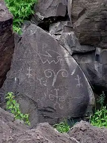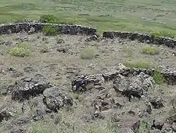 Здесь обнаружены уникальные руины, в частности, кива, выполненная из вулканических пород в центре памятника. Базальтовые ступеньки под крутым наклоном ведут вверх на месу.