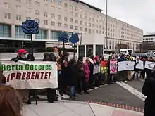 - Justicia por Berta en Colombia: manifiestan en las afueras de la embajada de Honduras. comunitariapress.wordpress.com (5 March 2016). Дата обращения: 5 марта 2016.