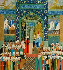 Юсуф и Зулейха. Правая часть фронтисписа к "Хамсе" Джами. 1522, Библиотека дворца Гулистан.