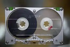 - Первая феррохромовая лента Sony Duad была представлена осенью 1973 года[54]. Базовый пятимикронный слой гамма-оксида железа был покрыт микронным слоем хромдиоксидного пигмента[54]. В 1974 к производству подключился BASF. Феррохромовые ленты, стандартизованные в 1978 году МЭК как тип III, не имели успеха на рынке и около 1984 года были сняты с производства.