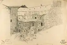Кастель, от лат. castellum тип оборонительного сооружения (замка), повторяющего традиции возведения каструмов, римских укреплённых лагерей. Согласно канону «замков-кастелей», со временем внутри четырехугольного двора к оборонительным стенам пристраивались жилые флигели [2], [3]. С противоположной стороны (западной) от Башни Святого Олафа располагался форбург - Кузнечный двор.