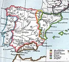 Захват Толедо в 1085 году добавил Новую Кастилию к территориям короны, и битва в Лас-Навас-де-Толоса (1212) ознаменовала потерю мусульманами большей части Юга. Леон объединился с Кастилией в 1230 году Последующие десятилетия принесли завоевание Кордовы (1236), Мурсии (1243) и Севильи (1248).
