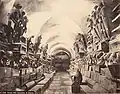 «И я вижу вдруг перед собой огромную галерею, широкую и высокую, стены которой уставлены множеством скелетов, одетых самым причудливым и нелепым образом. Одни висят в воздухе бок о бок, другие уложены на пяти каменных полках, идущих от пола до потолка. Ряд мертвецов стоит на земле сплошным строем; головы их страшны, рты словно вот-вот заговорят. Некоторые из этих голов покрыты отвратительной растительностью, которая еще более уродует челюсти и черепа; на иных сохранились все волосы, на других — клок усов, на третьих — часть бороды.