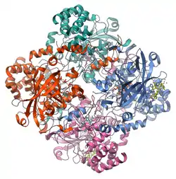 Катала́за (от греч. καταλύω — разрушать, ломать[1]) — фермент (КФ 1.11.1.6), который катализирует разложение образующегося в процессе биологического окисления пероксида водорода на воду и молекулярный кислород (), а также окисляет в присутствии пероксида водорода низкомолекулярные спирты и нитриты. Содержится почти во всех организмах. Участвует в тканевом дыхании.