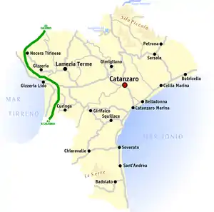Столицей провинции и всего региона является город Катандзаро, разделённый на две части долиной Fiumarella, через которую проходит мост Моранди. Построенный в 1960 году по проекту Риккардо Моранди, он является одним из высочайших мостов в Европе[2].