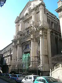 Вторая половина XVII века — трагический период в истории города: в 1669 году произошло сильное извержение вулкана Этна, большинство домов оказались погребены под слоем лавы и пепла. В 1693 году, когда Катания ещё не оправилась от первого удара, землетрясение уничтожило всё, что сохранилось или было построено. Однако жители не покинули город и снова восстановили его. В качестве основных материалов использовались чёрная лава и светлый известняк.