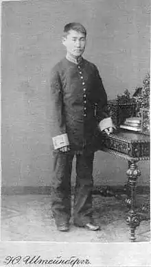 Отец мой был татарин[Комм 1] племени Сагай, а мать татарка племени Каш, колена Пюрют, отец по профессии был улусный писарь своего племени. Как я, так и родители мои — христиане православного вероисповедания. Родители и все предки исповедовали христианство, которое введено в долину Абакана в XVIII столетии, и вместе с тем открыто держались шаманских обрядов: участвовали в жертвоприношениях духам гор, воды, огня и неба и молились этим духам как покровителям домашнего скота и людей[5].