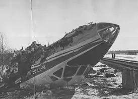 Высота полёта была 60 метров, когда наконец экипаж решил уходить на второй круг, но перегруженный самолёт слушался штурвала с трудом. В 1690 метрах от торца полосы и в 155 метрах правее её оси Ту-134, находясь на высоте 10—12 метров над землёй, врезался в деревья, повредив себе при этом левое полукрыло. От удара авиалайнер развернуло влево, он пересёк ось полосы и в 00:57 с левым креном 45° врезался в двухметровую железнодорожную насыпь и, разрушившись, загорелся[3].