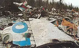 ![]() Последствия катастрофы — на обломке фюзеляжа видна часть надписи «AEROFLOT» | |