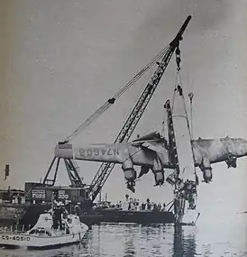 Обломки самолёта довольно быстро были найдены, после чего была предпринята попытка изучить их под водой с помощью телекамеры, однако от этой идеи пришлось отказаться, так как вода оказалась слишком мутной. Тогда обломки переместили на глубину 40 футов (12 м), где их исследовали водолазы и определили, что на обоих крыльях закрылки полностью убраны, но зато отделился двигатель № 1, а у оставшихся трёх обнаружили полностью открытые створки капотов. Найденные обломки затем извлекли из воды на баржу для более внимательного изучения; поиски отделившегося двигателя вели в течение недели с помощью гидролокатора, но безуспешно[5].