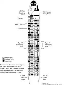 В катастрофе погибли 73 человека — 8 членов экипажа (все 3 пилота и 5 бортпроводников) и 65 пассажиров. Выжили 85 человек — 1 член экипажа (старший бортпроводник Контрерас) и 84 пассажира; 81 из них получил серьёзные травмы (включая старшего бортпроводника и 8 детей), 4 получили незначительные травмы. Погибших и раненых на земле не было[5].